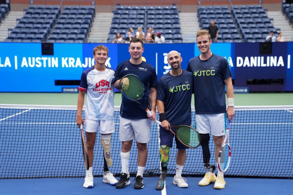 Para-standing tennis at the 2023 US Open. Danny Scrivano second to left. Photo by Darren Carroll/USTA.